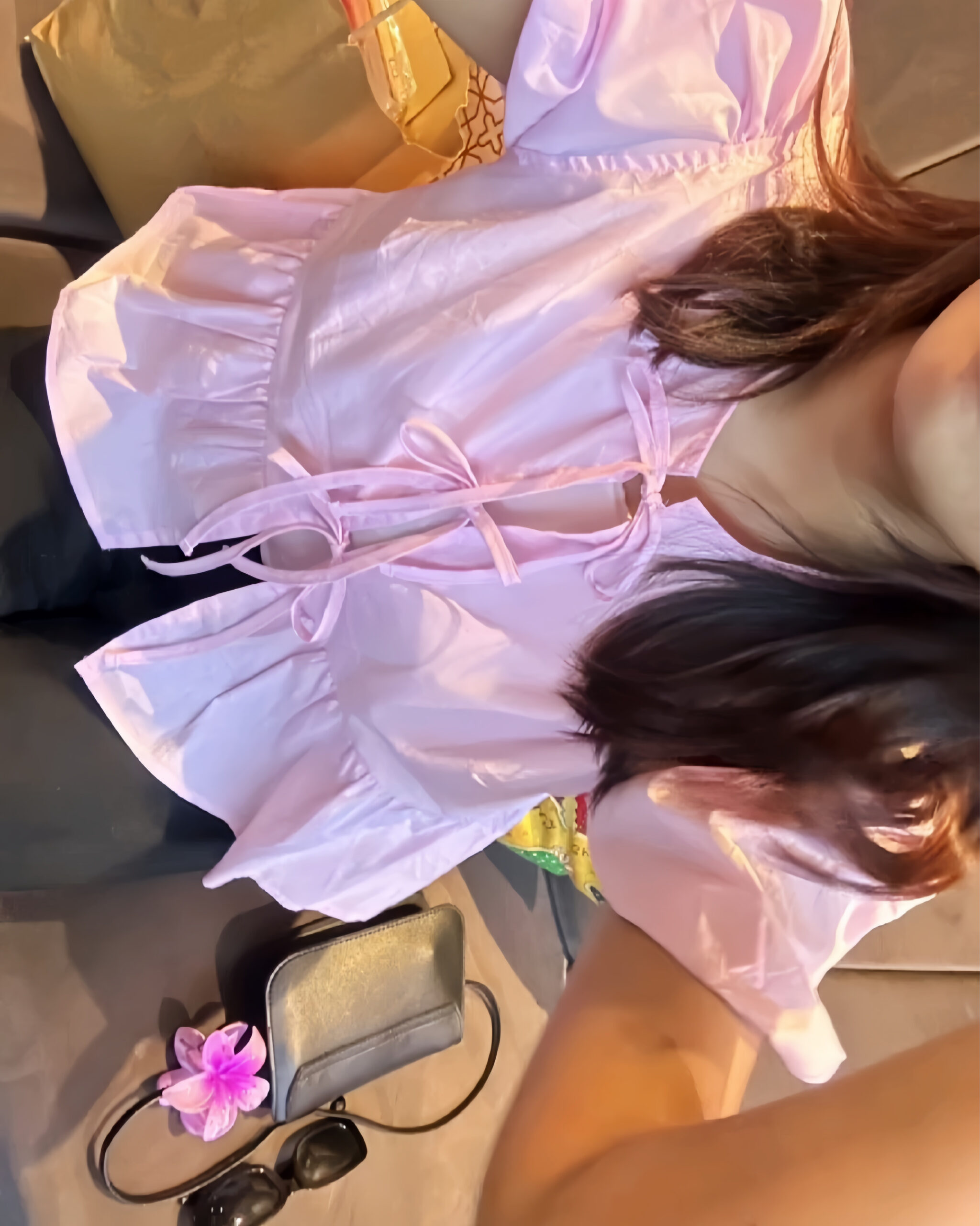• Neckline: Open, with front ties